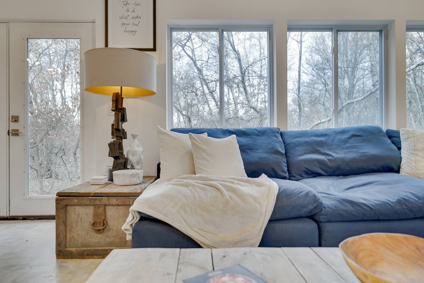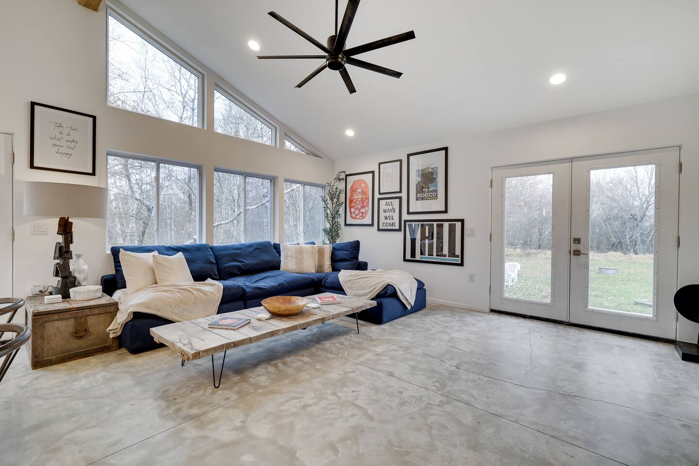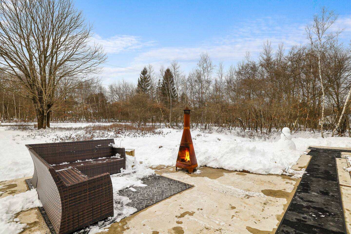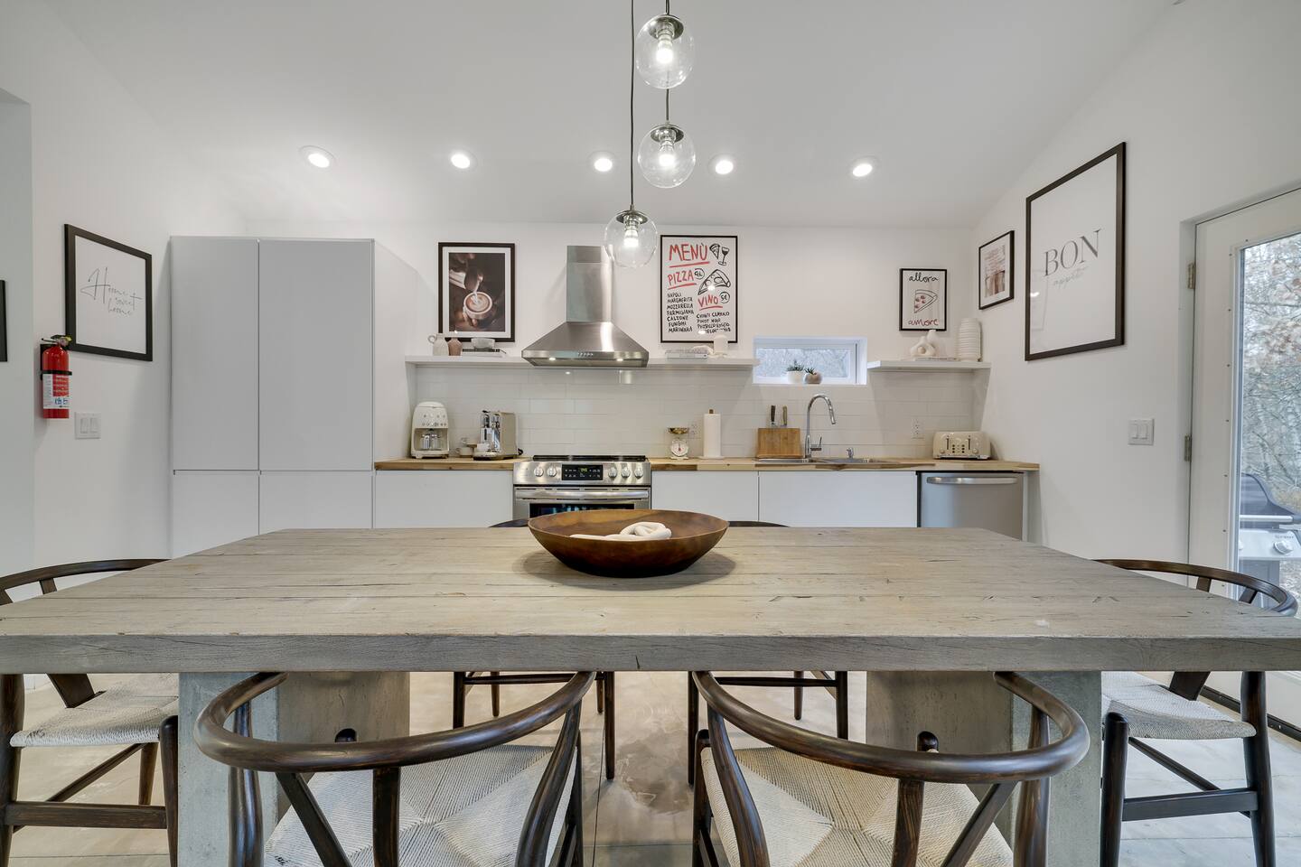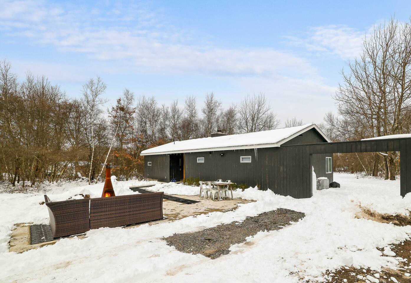 Escape the hustle of the big city in style at this picture-perfect open floor plan Modern Ranch Home, nestled in nature surrounded by 1.5 acres of breathtaking native white birch trees. The Ranch house offers a one-of-a-kind modern rustic aesthetic from the pro design team at Restoration Hardware. Full kitchen, king-size master bedroom, indoor fireplace, indoor & outdoor dining area, outdoor lounge, rustic chiminea-style firepit. There’s something for the whole family (including furry friends).