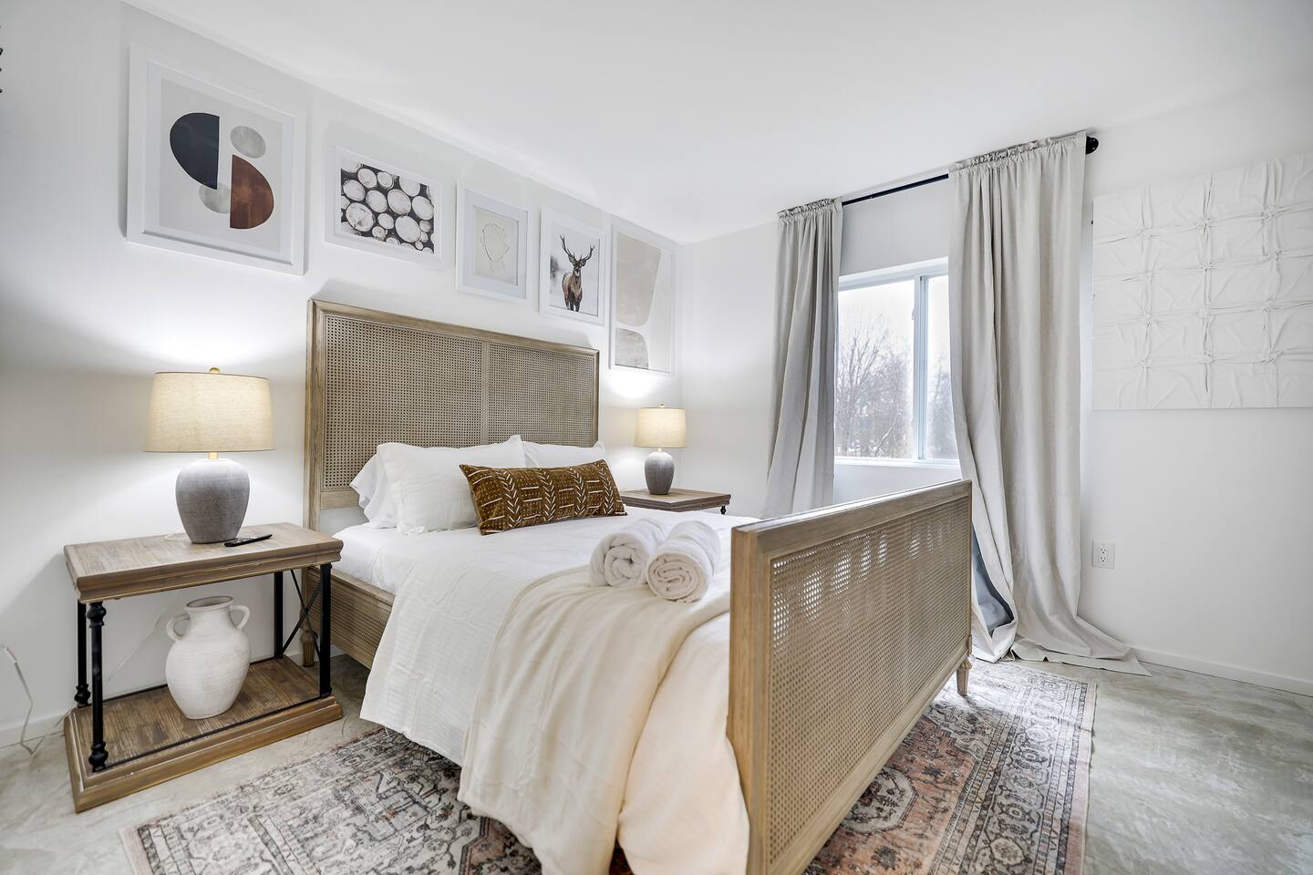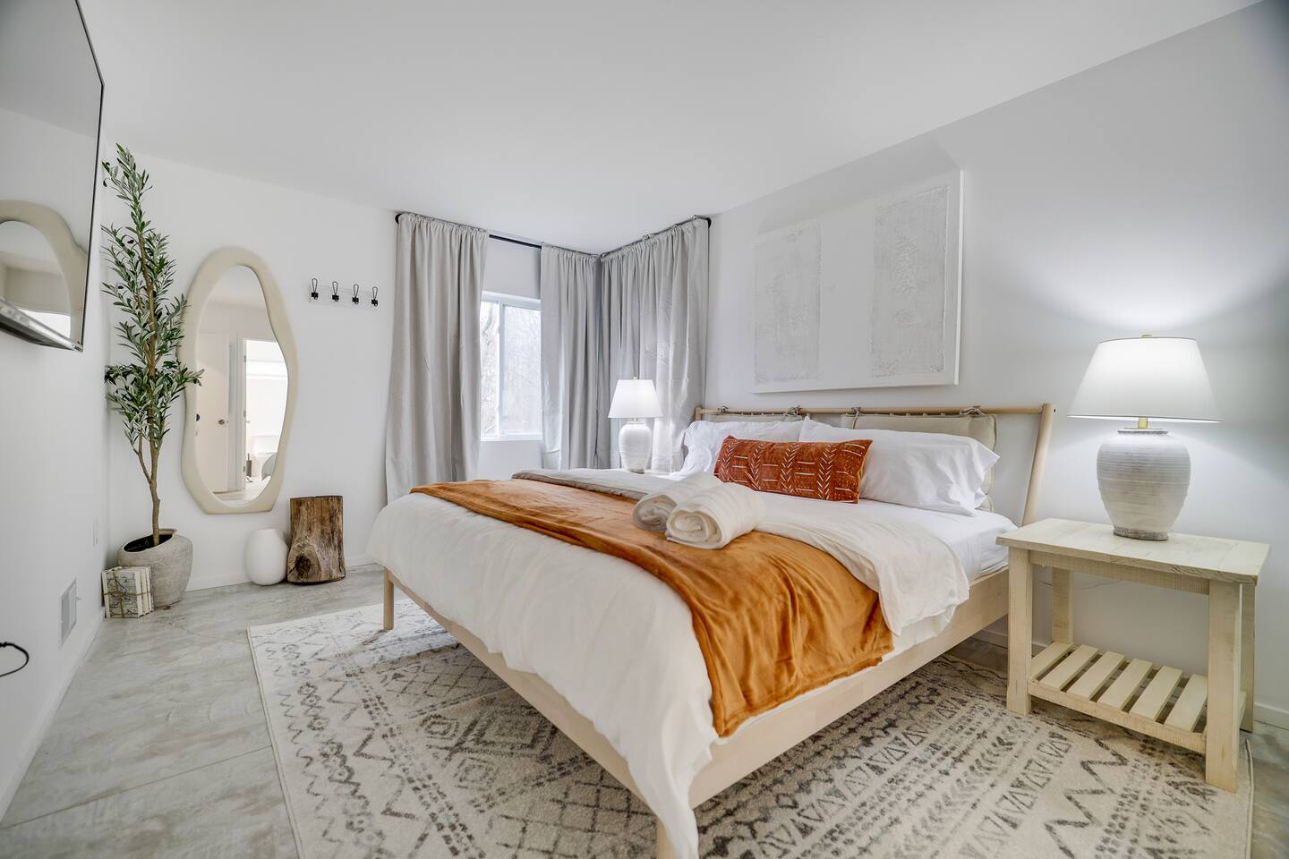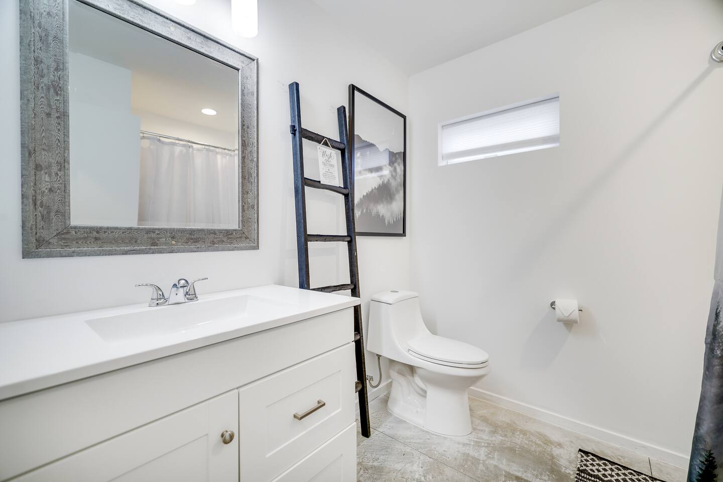 The space KEY FEATURES: ☀ 1500-square-foot Modern, completely remodeled Cabin tucked away on 1.5 acres of beautiful modern interior design with relaxing views of the birch and ash trees surrounding you. ☀ Three comfortable bedrooms; 1 king-size master + 2 queen-size bedrooms with shared full bath! ☀Snuggle up with your favorite book, or enjoy a cup of coffee in front of the modern brick Indoor wood burning fireplace ☀ Spacious open-concept living area w/ lounge, dining area + full kitchen ☀There are two large Restoration Hardware sofas in the living room to relax, nap, or sit and sip wine with friends and family. ☀ Large living room w/ a 60" Roku Smart TV & fireplace! ☀ High-speed wifi (200-300 Mbps!) + dedicated remote workspace w/ desk + chair ☀ Indoor and outdoor reclaimed wood dining tables with seating for eight are perfect for family game night or a locally sourced meal. ☀Simple open-shelf style kitchen is stocked with everything needed for a perfect home-cooked meal (pots, pans, quick boil tea kettle, drip coffee maker, utensils, dinnerware etc.) ☀We also provide silverware, hand towels, linen napkins, chef knives, a full set of grilling utensils, kabob skewers, bowls, plates, mugs, and glassware. ☀ 55” flat-screen Roku smart TVs in every bedroom! ☀ Family-friendly entertainment, books, and board games ☀ Brand new high-capacity Smart Washer + dryer in laundry room ☀ Kid-friendly amenities; include a pack-and-play stored in the bedrooms closet ☀ Polycade loaded with all your favorite classic arcade games inside the Queen Size Bedroom ☀ Expansive porch w/ outdoor seating, outdoor dining table, private rustic chiminea fireplace + BBQ grill! ☀ Large outdoor fire pit with Adirondack chair seating under the stars ☀ SMART HOME - Nest Thermostat and Nest Yale lock so you can check in at your convenience! ☀ Ample free parking on-site ☀ Breathtaking forest and Mountain views ☆☆ BEDROOMS ☆☆ Recharge your batteries with a restful slumber every night of your stay at this charming Modern Ranch Home. All of the comfortable bedrooms feature gel memory foam mattresses from Helix Hospitality, the king-sized bed in the loft offers plenty of space for you to stretch out and relax, while the other two bedrooms offer equally comfortable queen-sized beds. You’re sure to get a blissful night’s sleep! Each bedroom has been carefully crafted for your comfort, from the luxurious beds and premium pillows to the practical bedside tables and 55” flat-screen Roku smart TVs. A quiet workspace is available in one of the queen size rooms downstairs, with a comfortable chair and desk that provides the perfect place to get some work done (though we hope it’s not necessary)! The reclaimed wood indoor and outdoor dining tables are also great options for remote work with views of the forest surrounding you. ☆☆ BATHROOMs ☆☆ Both functional and stylish, we have a shower tub combo, and ensure the bathroom is in pristine condition and is the perfect place to get ready for the exciting day ahead. The full bathroom is stocked with fresh towels, a hair dryer, and essential toiletries for your convenience. ☆☆ KITCHEN & LOUNGE ☆☆ The breathtaking open living space perfectly blends stylish, rustic furnishings with all the modern amenities you need for the perfect vacation! Feel yourself relax from the moment you step through the front door. The main living area combines a full kitchen, large dining table, in a spacious open-floor design. Glimmering natural light from the numerous large windows dances across every surface, inviting you to sit back and relax. Sink into the plush couch in front of the stunning modern brick fireplace for intimate chats. Listen to some classic tunes or enjoy a movie with friends. Shake up a cocktail, or relax with a bottle of wine while playing your favorite board games in front of the fireplace with friends. The full kitchen is a bright, airy space equipped with modern stainless steel appliances, such as electric range with oven, to ensure you feel right at home preparing your favorite meals. Brew a fresh coffee exactly how you like it, then take it to the expansive front porch and enjoy the relaxing views of the birch trees all around you. The dining area boasts a long supper table, which easily accommodates eight guests. Illuminated by a modern industrial-style globe pendant lights, it’s a great place for entertaining and casual meals with your loved ones. ☆☆ OUTSIDE SPACE ☆☆ Resting on 1.5 acres of picturesque white forest, you’ll be surrounded by stunning natural beauty. Enjoy some “me time” with a good book under the cover of the sheltered porch. Take in the gorgeous views from the large front patio while relaxing at the outdoor dining table, comfy outdoor lounge, or Adirondack chairs at the firepit in the backyard. Fire up the BBQ and enjoy a good old-fashioned cookout – the outdoor dining table can be set for eight. Finish the perfect day by cuddling up with your friends and family and toasting marshmallows around the glowing fire pit. The outdoor space is entirely yours to explore, so feel free to make the most of your breathtaking location! This friendly, inviting, Modern Rustic Ranch home is located near the best of all the Poconos Mountains has to offer and boasts stunning views. This beautiful region has easy access to plenty of outdoor activities to explore on foot or bike and many nearby family-friendly attractions. It feels a million miles away from city life, yet in reality, it’s just two hours away from New York and a short drive away from top attractions such as Stroudsburg, The Delaware Water Gap, Camelback Mountain, the Crossings Outlets, Bushkill Falls and Hickory Run State Park. ★☆ Book Today & Let Us Take Care Of You In Poconos! ☆★