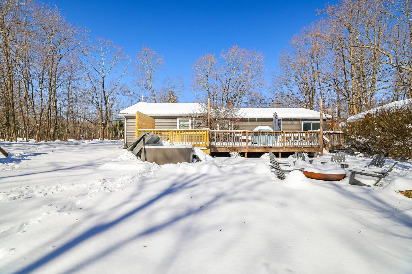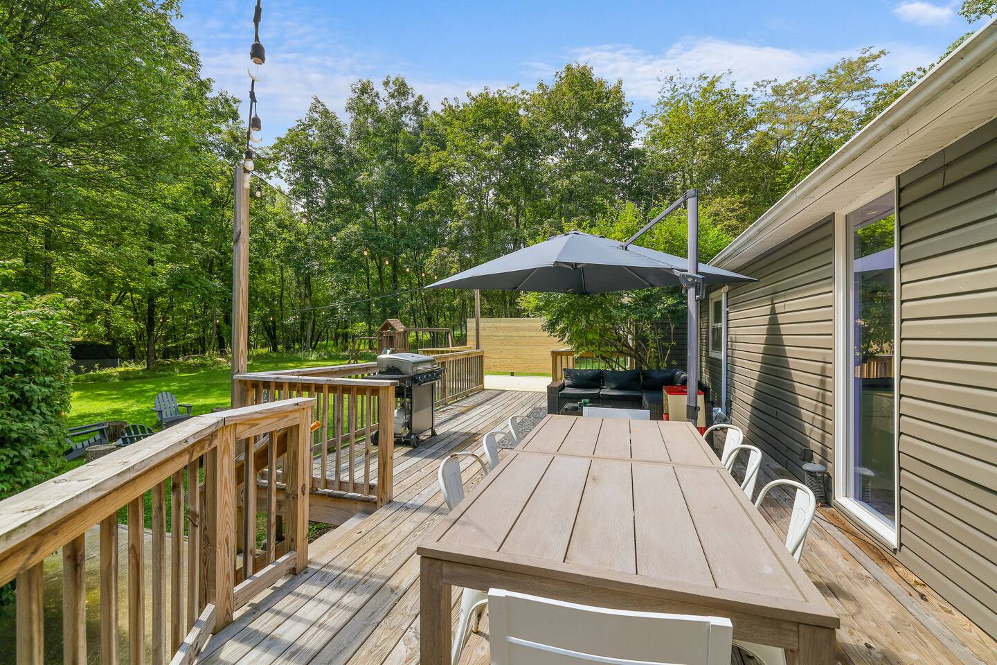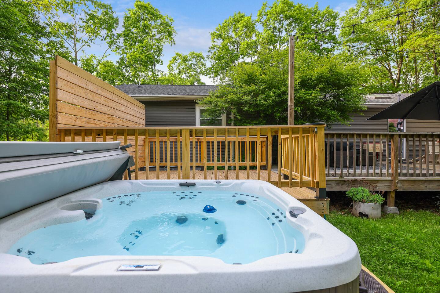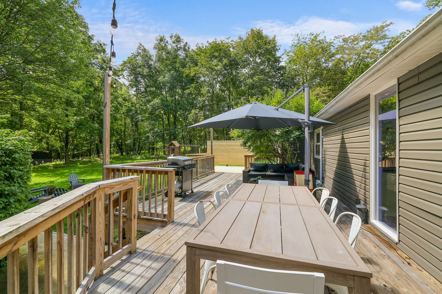 Escape to our newly remodeled secluded Modern Ranch home nestled in the heart of the Pocono Mountains! This luxurious 4 bedroom 2 bathroom retreat boasts, a living area and a smart gym with Peloton & Lululemon Mirror. Relax in the spacious outdoor patio, outdoor dining area, & private lounge. Kickback around the reclaimed steel firepit under the stars. Book your getaway now and reconnect with nature in style. Smart Gym Includes Lulu Lemon Smart Mirror + Peloton Roku Smart 4kTV in every room!