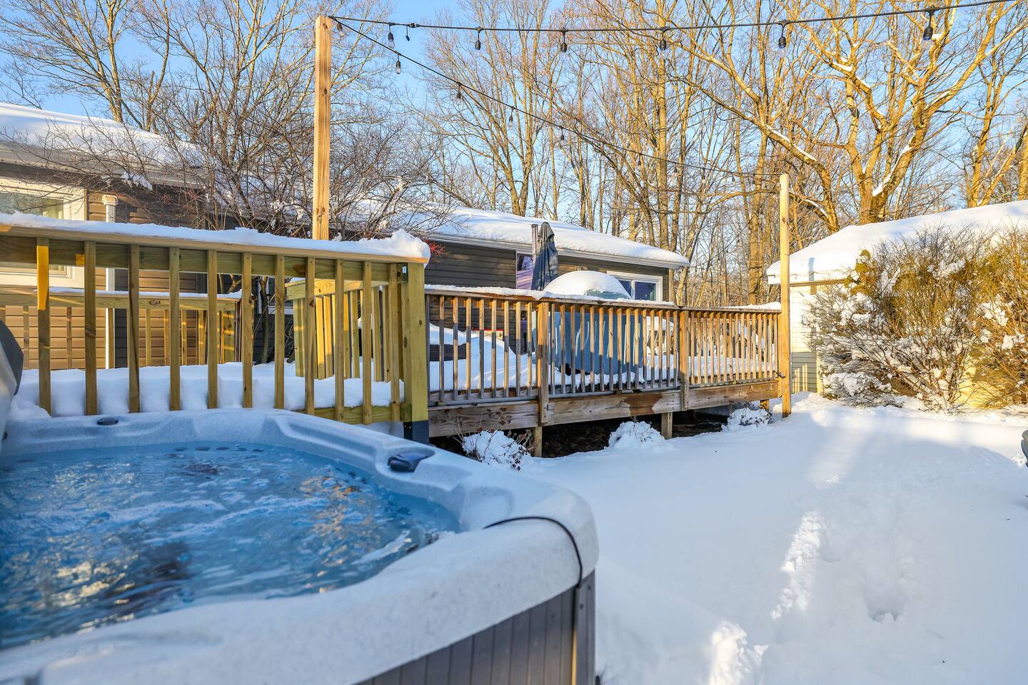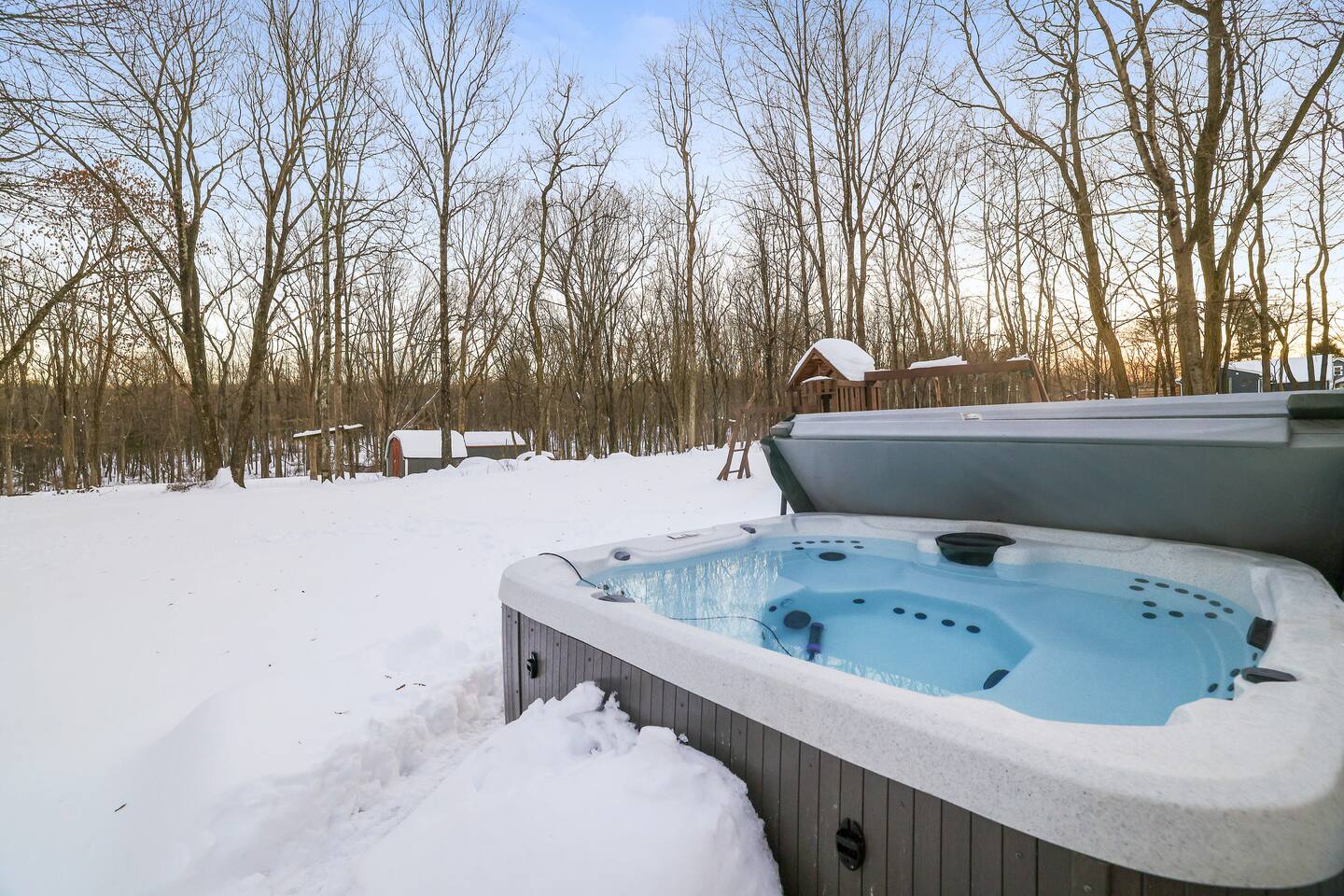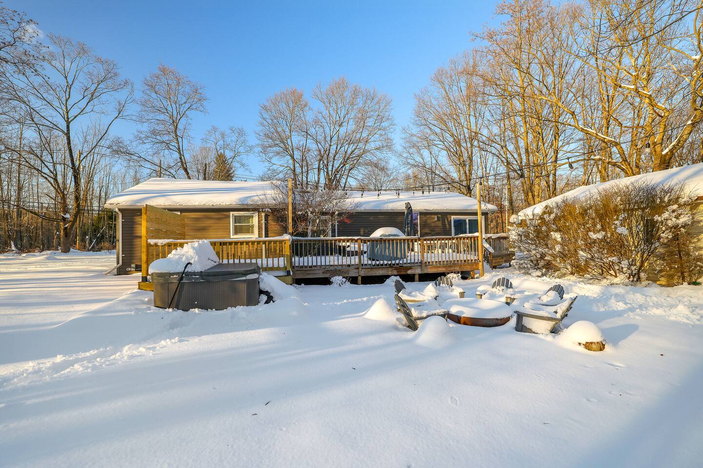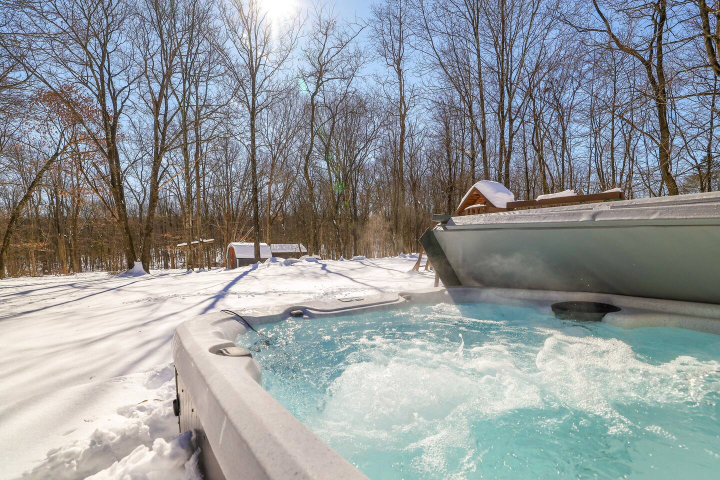 Escape to our newly remodeled secluded Modern Ranch home nestled in the heart of the Pocono Mountains! This luxurious 4 bedroom 2 bathroom retreat boasts, a living area and a smart gym with Peloton & Lululemon Mirror. Relax in the spacious outdoor patio, outdoor dining area, & private lounge. Kickback around the reclaimed steel firepit under the stars. Book your getaway now and reconnect with nature in style. Smart Gym Includes Lulu Lemon Smart Mirror + Peloton Roku Smart 4kTV in every room!