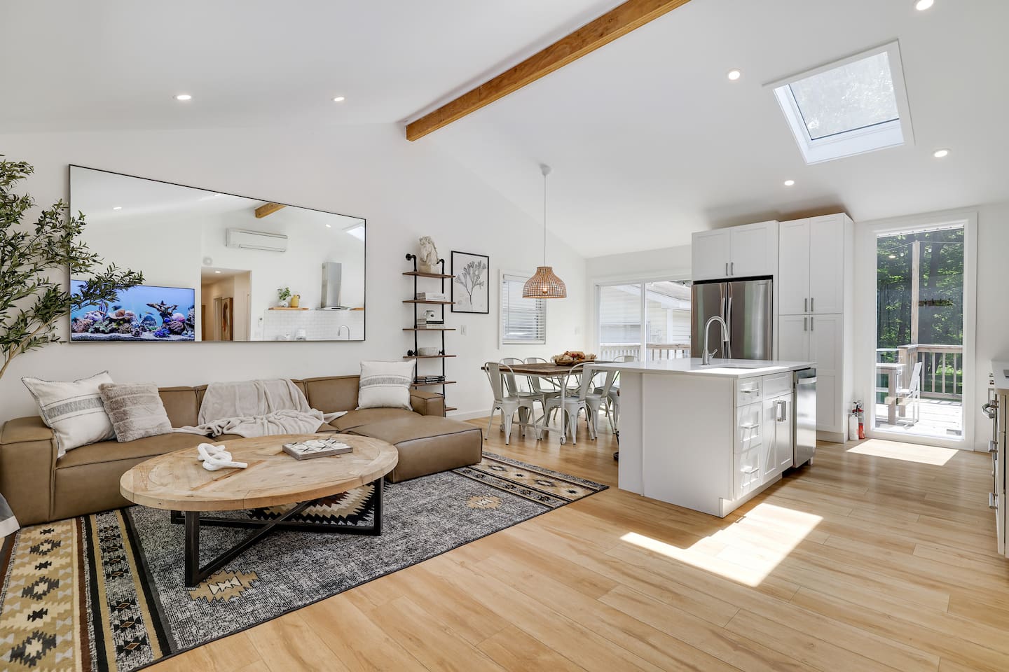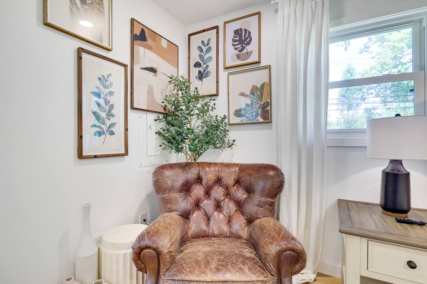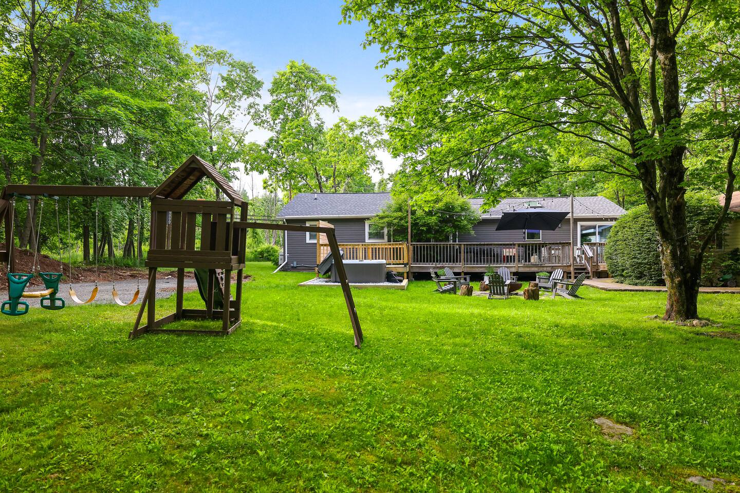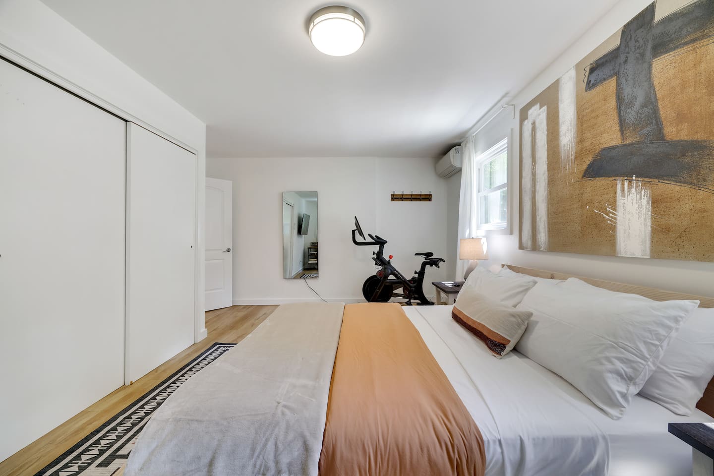 Escape to our newly remodeled secluded Modern Ranch home nestled in the heart of the Pocono Mountains! This luxurious 4 bedroom 2 bathroom retreat boasts, a living area and a smart gym with Peloton & Lululemon Mirror. Relax in the spacious outdoor patio, outdoor dining area, & private lounge. Kickback around the reclaimed steel firepit under the stars. Book your getaway now and reconnect with nature in style. Smart Gym Includes Lulu Lemon Smart Mirror + Peloton Roku Smart 4kTV in every room!