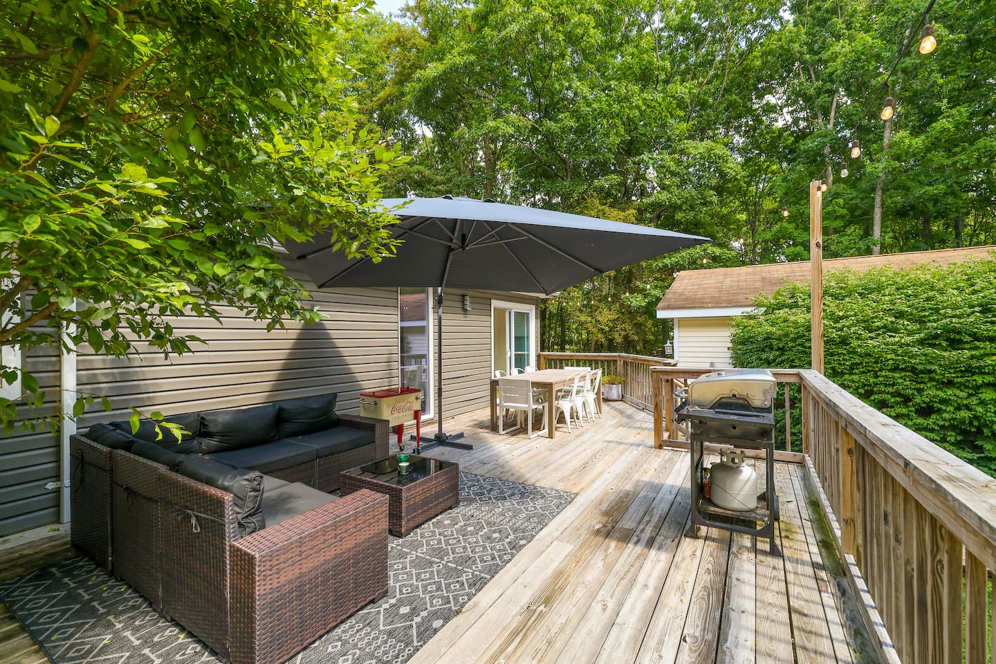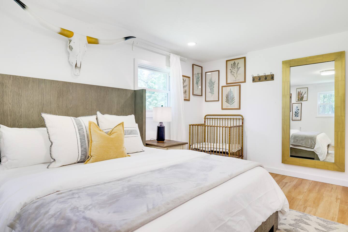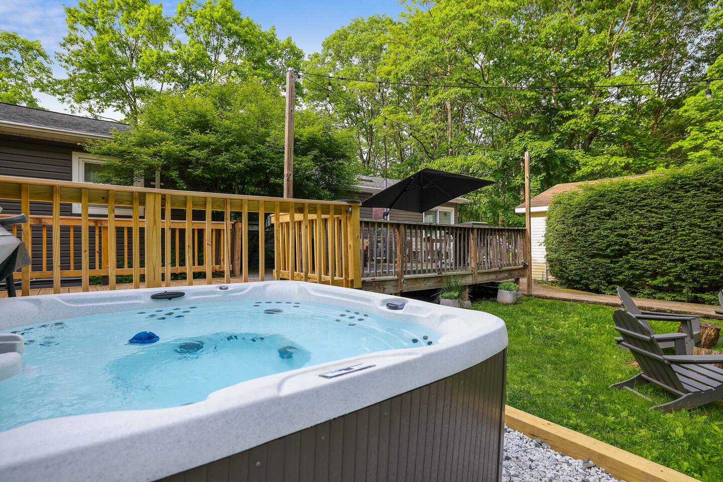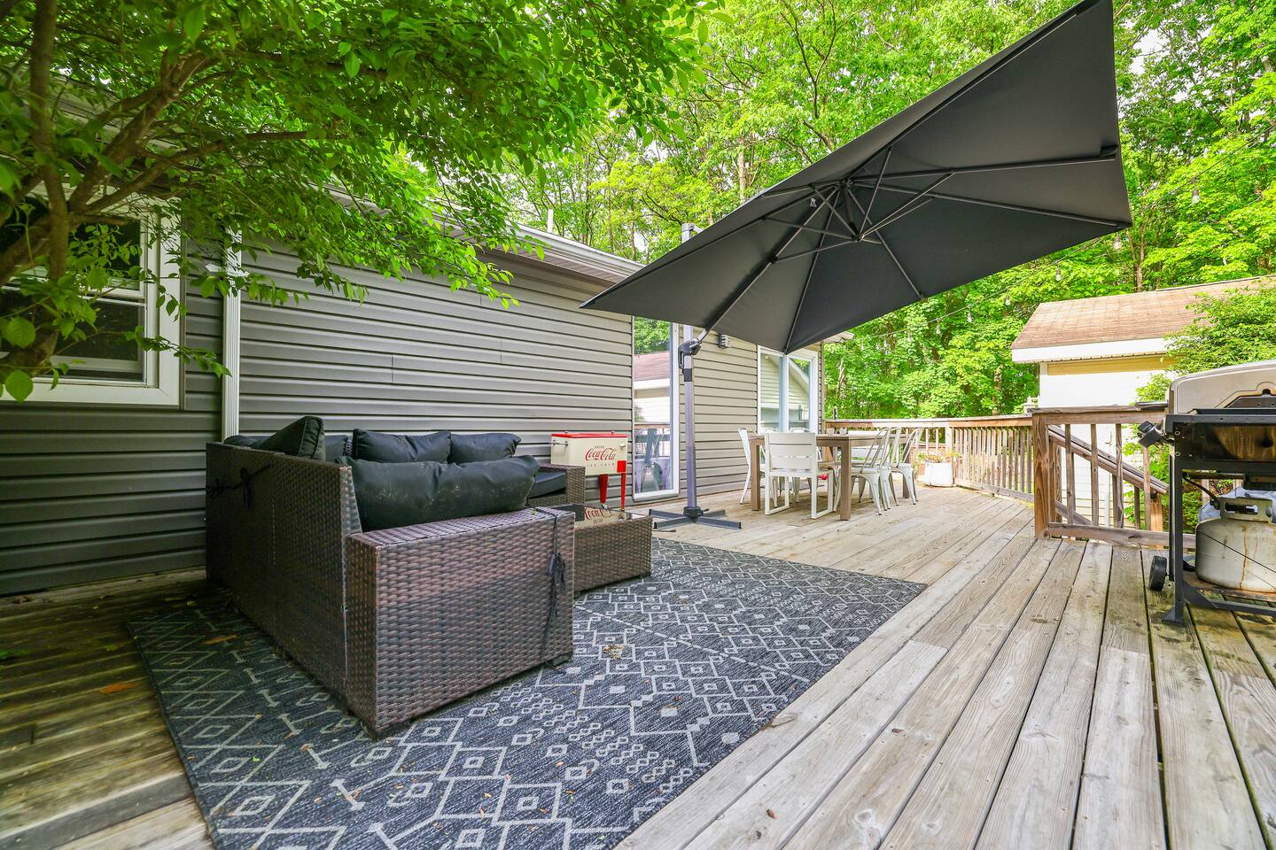 Home: One floor- open layout- 4 bed - 2 baths - 1550 Sq Feet MAIN FLOOR: Nestled in the mountains, this beautiful ranch boasts an open plan kitchen, dining, and living area that is perfect for entertaining. The kitchen is fully equipped with modern appliances and plenty of counter space for preparing meals. The dining area features an 8 foot dining table that seats up to eight people, making it perfect for hosting dinner parties or game nights. The living room serves as the perfect spot to curl up with a good book on a cold winter's night on our 8 foot leather RH Luxe size couch. A 65-inch smart 4K Roku Smart TV provides endless entertainment options for movie nights or streaming your favorite shows. Step outside and you'll find a walkout deck that is perfect for al fresco dining. The deck features a dining table and an outdoor grill, making it easy to cook up a delicious meal while enjoying the fresh mountain air. KITCHEN: - Smeg Drip Coffee Machine - Nespresso Longhi Coffee Machine - Breveille Electric Kettle - Electric Toaster - Stainless steel appliances - Utensils, Mugs, Glass Cups, Wine Glass + much more LIVING AREA: 8 Foot RH Leather Couch 65in Smart 4k TV Large Coffee Table BEDROOM DETAILS: The master is a stylish Cali king size bedroom with a private bathroo is a luxurious and comfortable space that is perfect for relaxation. The Cali king size bed is larger than a standard king size bed, offering plenty of room to stretch out and relax. The private bathroom adds an extra level of privacy and convenience, and the smart 55in 4k TV provides a high-quality entertainment experience. We also have a second Cali king size bedroom, with a gym area equipped with Peloton, and Lululemon mirror, as well as a private seating area, and desk for remote work. The two stylish and comfortable queen size bedrooms offer plenty of space for guests to rest and relax. All of the bedrooms are equipped with smart 55in 4k TVs, ensuring that guests have access to top-quality entertainment. BEDROOM 1 (: California King Size Bed private in suite bathroom private seating area crib 55in Smart Roku 4k TV BEDROOM 2 : California King size Bed private Lounge Chair Small Desk area for remote work Peloton and Lululemon work out area 55in Smart Roku 4k TV BEDROOM 3 : Queen Size Bed 55in Smart Roku 4k TV BEDROOM 4 : Queen Size Bed 55in Smart Roku TV Ground Floor: A beautiful open layout living area with a large 10 foot modular couch, a 65 inch smart roku TV. The modular couch is a comfortable and spacious spot for guests to relax and socialize, with its comfortable cushions and ample seating room. The 75k TV, mounted on the wall, provides a clear and high-quality viewing experience for movies, TV shows, and sports. Overall, this living area is a stunning and inviting space that provides guests with a luxurious and enjoyable vacation experience. OUTDOOR: The Home has a beautiful outdoor space with a large deck off to the side of house with an L-shaped couch, a 10-foot umbrella, is a comfortable and functional area for entertaining and relaxing. The L-shaped couch, placed on the deck offers plenty of seating room and a cozy place to relax and enjoy the outdoors. To provide shade and protection from the sun, you have a 10-foot umbrella, which is mounted on the deck. The umbrella will provide a large area of shade, making it a perfect spot to sit and relax during hot summer days. Finally, to add some ambiance and warmth to the outdoor space, you have an outdoor four foot diameter reclaimed steel outdoor firepit. The outdoor fireplace could be used to roast marshmallows, provide warmth on cool evenings, or simply create a cozy and inviting atmosphere. Overall, this outdoor space is a great place to relax, entertain, and enjoy the outdoors.