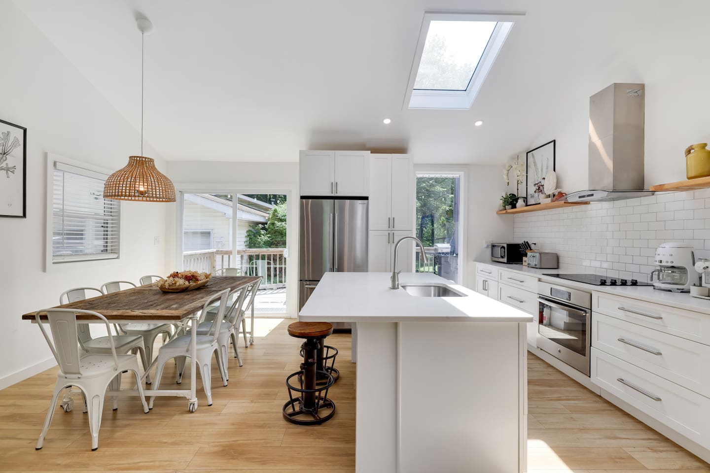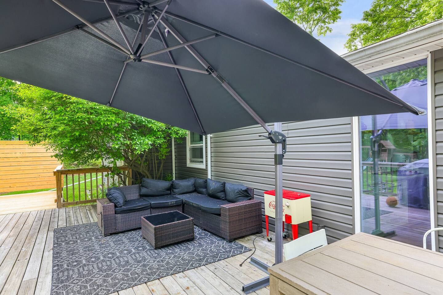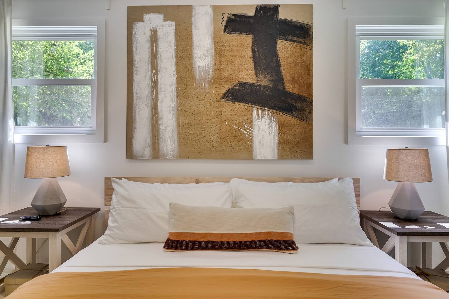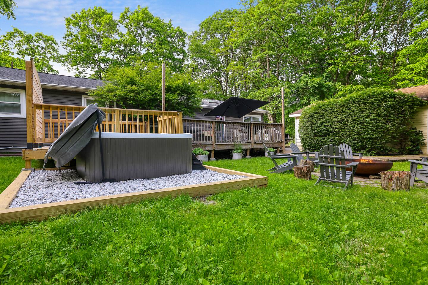 Home: One floor- open layout- 4 bed - 2 baths - 1550 Sq Feet MAIN FLOOR: Nestled in the mountains, this beautiful ranch boasts an open plan kitchen, dining, and living area that is perfect for entertaining. The kitchen is fully equipped with modern appliances and plenty of counter space for preparing meals. The dining area features an 8 foot dining table that seats up to eight people, making it perfect for hosting dinner parties or game nights. The living room serves as the perfect spot to curl up with a good book on a cold winter's night on our 8 foot leather RH Luxe size couch. A 65-inch smart 4K Roku Smart TV provides endless entertainment options for movie nights or streaming your favorite shows. Step outside and you'll find a walkout deck that is perfect for al fresco dining. The deck features a dining table and an outdoor grill, making it easy to cook up a delicious meal while enjoying the fresh mountain air. KITCHEN: - Smeg Drip Coffee Machine - Nespresso Longhi Coffee Machine - Breveille Electric Kettle - Electric Toaster - Stainless steel appliances - Utensils, Mugs, Glass Cups, Wine Glass + much more LIVING AREA: 8 Foot RH Leather Couch 65in Smart 4k TV Large Coffee Table BEDROOM DETAILS: The master is a stylish Cali king size bedroom with a private bathroo is a luxurious and comfortable space that is perfect for relaxation. The Cali king size bed is larger than a standard king size bed, offering plenty of room to stretch out and relax. The private bathroom adds an extra level of privacy and convenience, and the smart 55in 4k TV provides a high-quality entertainment experience. We also have a second Cali king size bedroom, with a gym area equipped with Peloton, and Lululemon mirror, as well as a private seating area, and desk for remote work. The two stylish and comfortable queen size bedrooms offer plenty of space for guests to rest and relax. All of the bedrooms are equipped with smart 55in 4k TVs, ensuring that guests have access to top-quality entertainment. BEDROOM 1 (: California King Size Bed private in suite bathroom private seating area crib 55in Smart Roku 4k TV BEDROOM 2 : California King size Bed private Lounge Chair Small Desk area for remote work Peloton and Lululemon work out area 55in Smart Roku 4k TV BEDROOM 3 : Queen Size Bed 55in Smart Roku 4k TV BEDROOM 4 : Queen Size Bed 55in Smart Roku TV Ground Floor: A beautiful open layout living area with a large 10 foot modular couch, a 65 inch smart roku TV. The modular couch is a comfortable and spacious spot for guests to relax and socialize, with its comfortable cushions and ample seating room. The 75k TV, mounted on the wall, provides a clear and high-quality viewing experience for movies, TV shows, and sports. Overall, this living area is a stunning and inviting space that provides guests with a luxurious and enjoyable vacation experience. OUTDOOR: The Home has a beautiful outdoor space with a large deck off to the side of house with an L-shaped couch, a 10-foot umbrella, is a comfortable and functional area for entertaining and relaxing. The L-shaped couch, placed on the deck offers plenty of seating room and a cozy place to relax and enjoy the outdoors. To provide shade and protection from the sun, you have a 10-foot umbrella, which is mounted on the deck. The umbrella will provide a large area of shade, making it a perfect spot to sit and relax during hot summer days. Finally, to add some ambiance and warmth to the outdoor space, you have an outdoor four foot diameter reclaimed steel outdoor firepit. The outdoor fireplace could be used to roast marshmallows, provide warmth on cool evenings, or simply create a cozy and inviting atmosphere. Overall, this outdoor space is a great place to relax, entertain, and enjoy the outdoors.